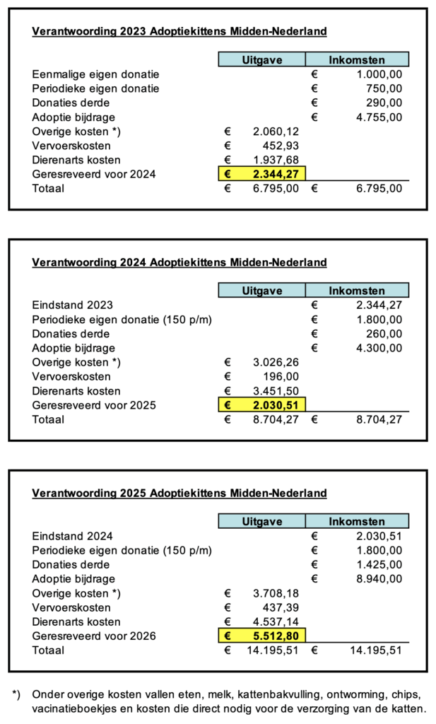 Wij zijn geen stichting, maar hebben geen winstoogmerk. Daarom vinden wij het belangrijk om volledig transparant te zijn over alle inkomsten en uitgaven. Omdat wij de boekhouding volledig apart houden, kunnen wij jaarlijks een overzicht maken van alle betalingen die er binnenkomen en weer uit gaan. Onderstaand het overzicht vanaf 2023.